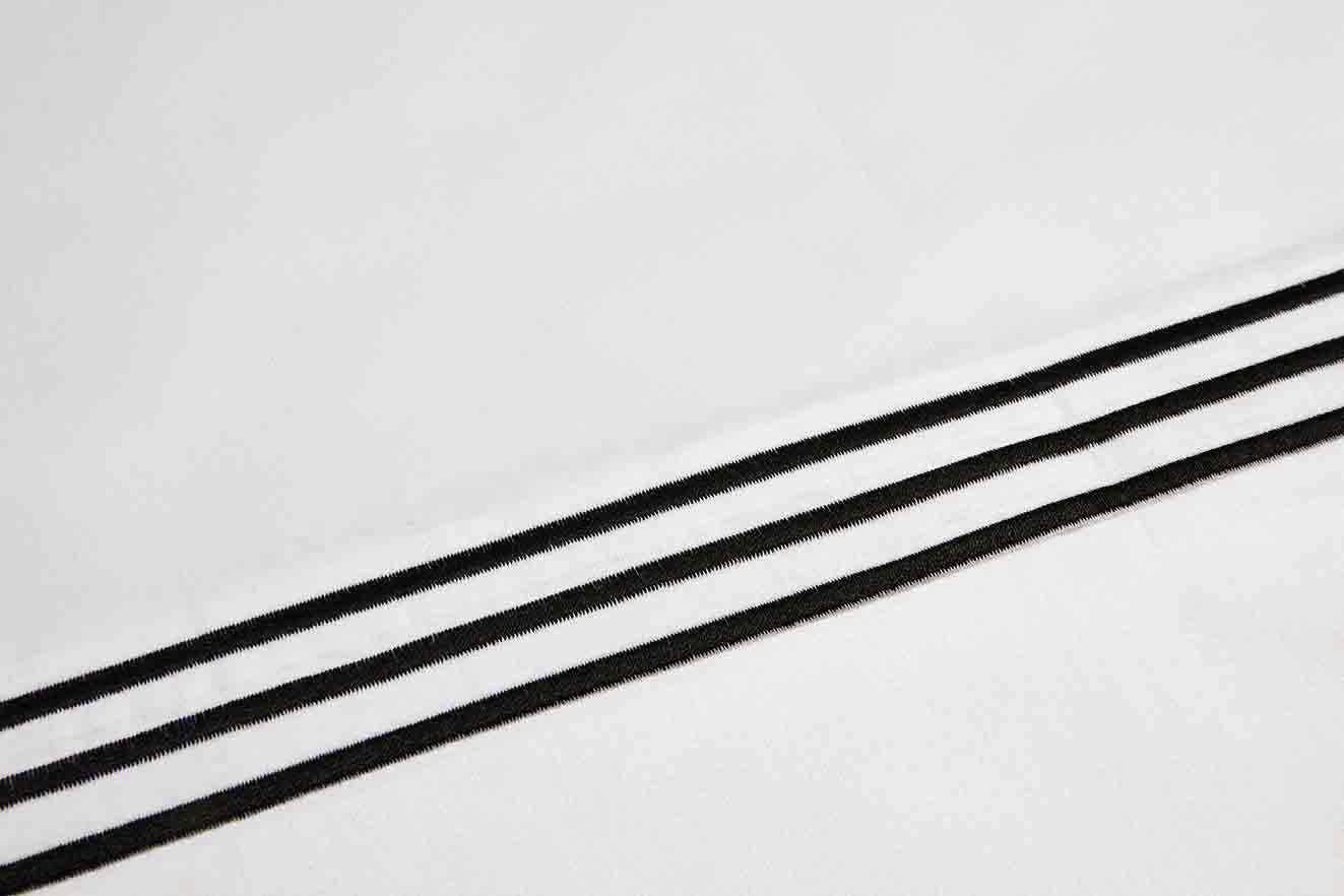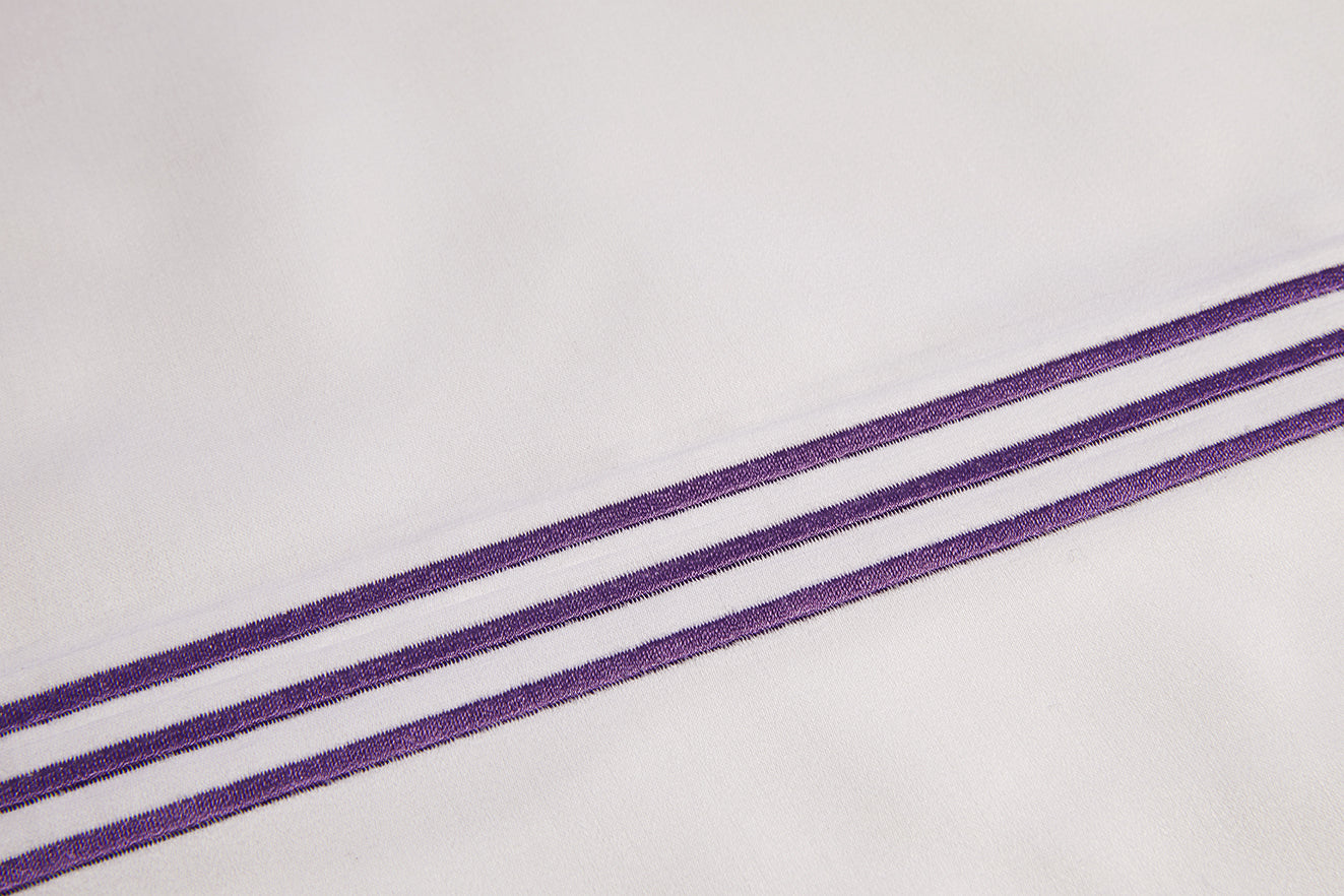 The Delancey collection makes a beautiful statement with an embroidered triple line border. The striped border can be customized in both placement and color, with a variety of unique colors available.