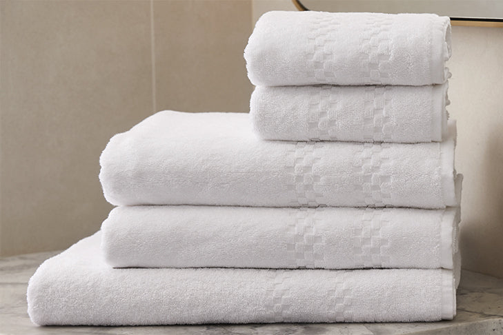 The Baccarat collection is a minimalist design that carries its beauty in the hem. The diamond pattern accents the towel edges for a quaint look.