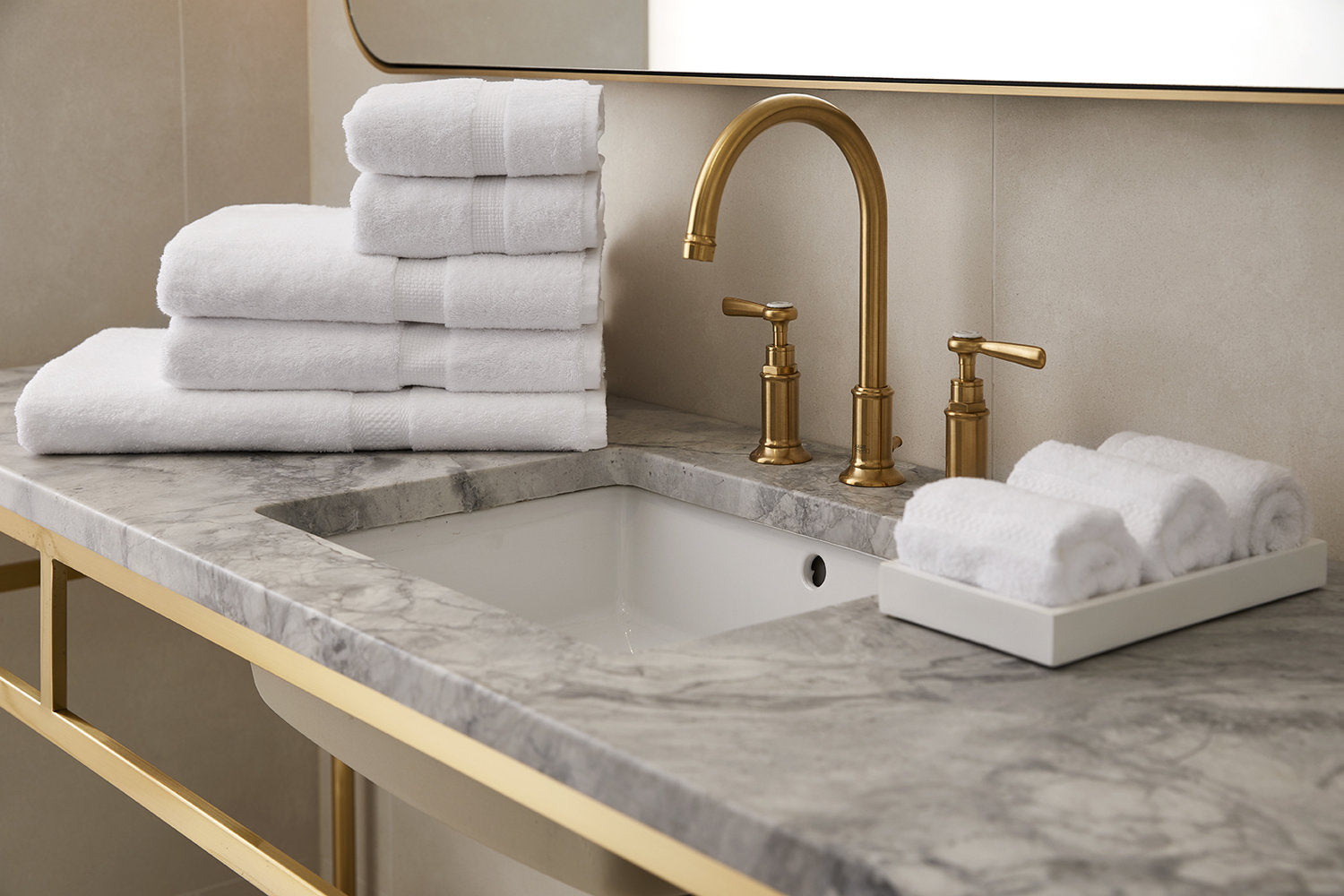 A bold stripe of Revival New York’s microcheck design, Rockefeller towels coordinate well with our Chambers bed collection.
